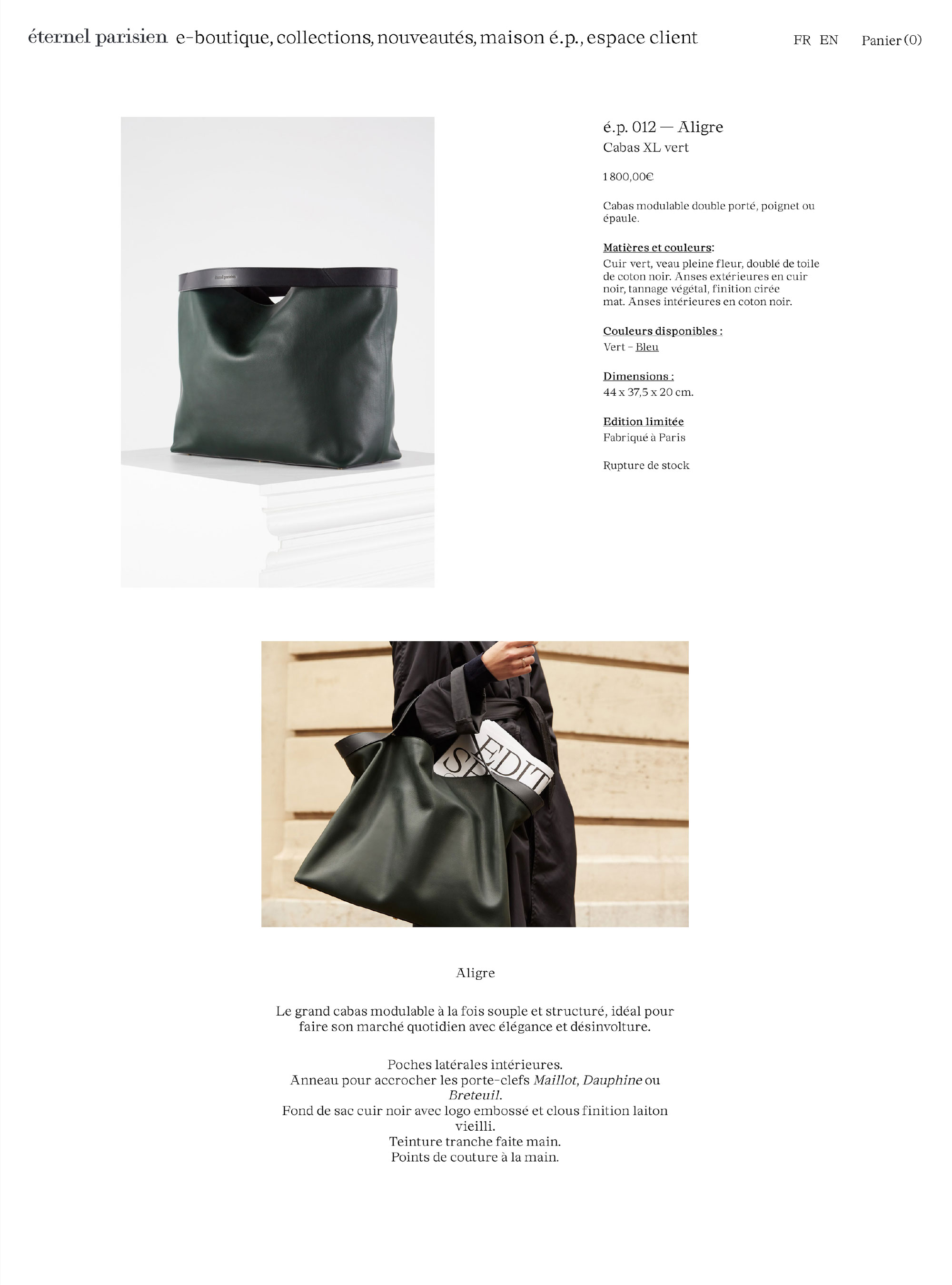 Website layout for luxury leather goods brand from designer Gilles Rosier.
